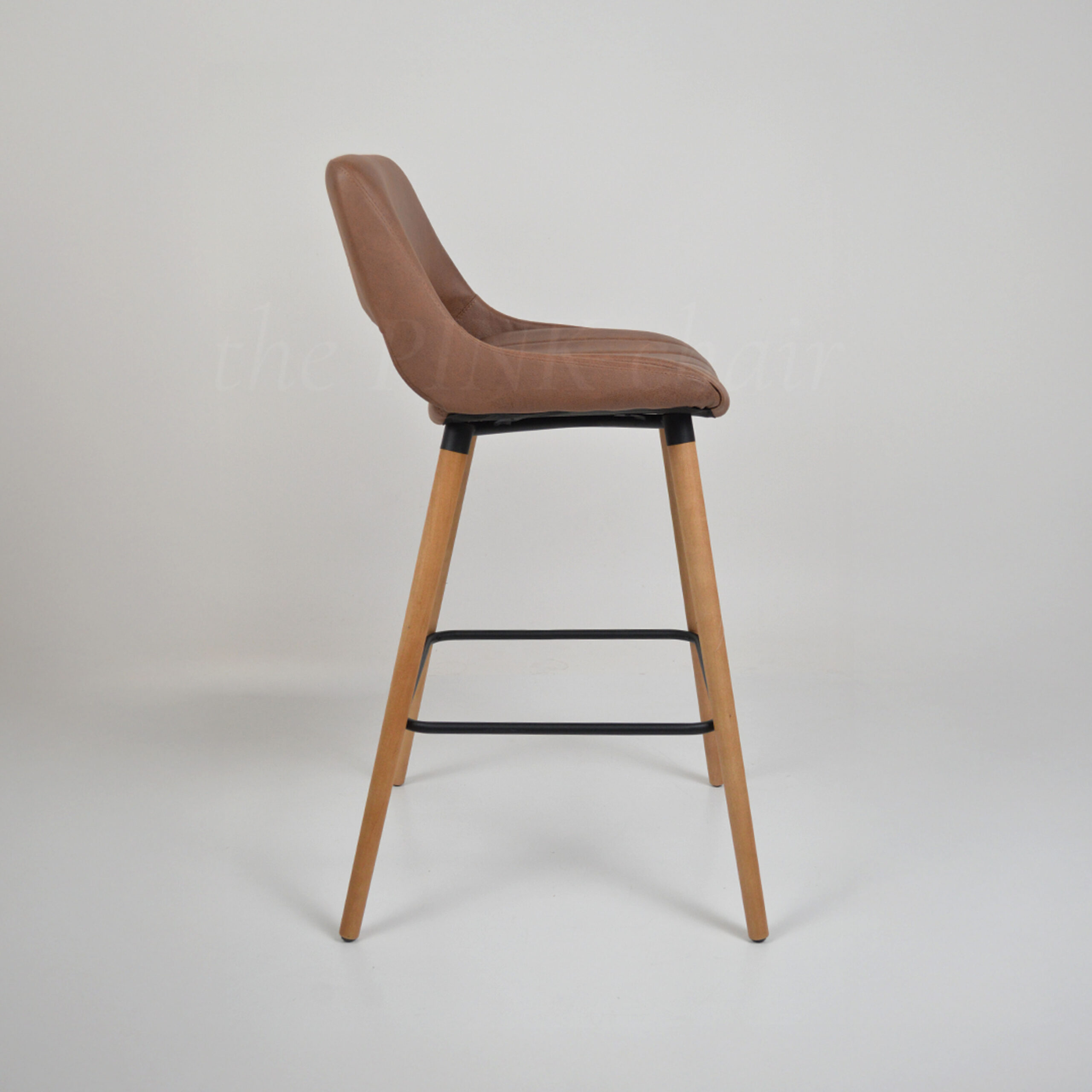 Monocasco de madera multilaminado, tapizado en genero Lenovo color Suela, estructura 4 patas de madera guatambu con terminacion natural.