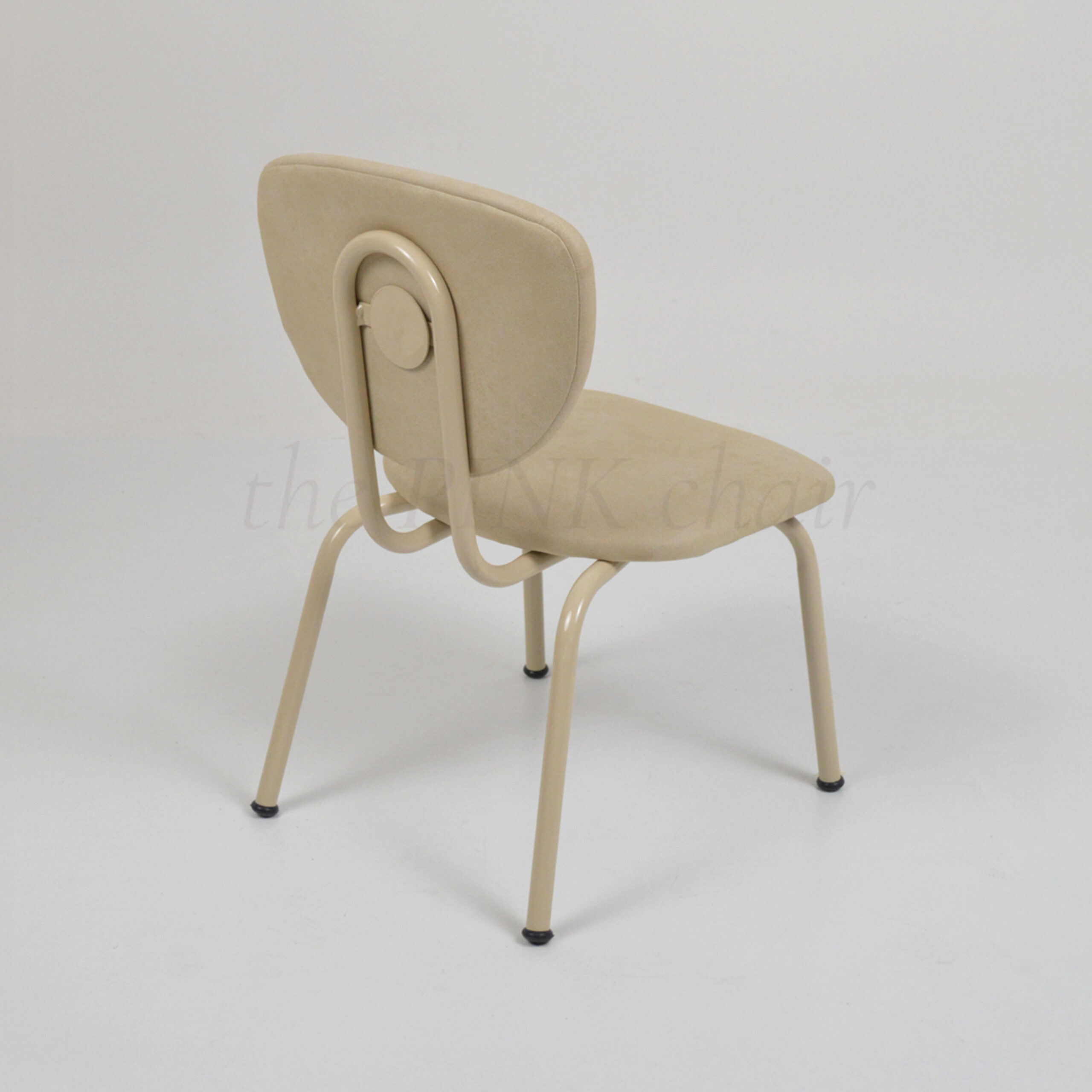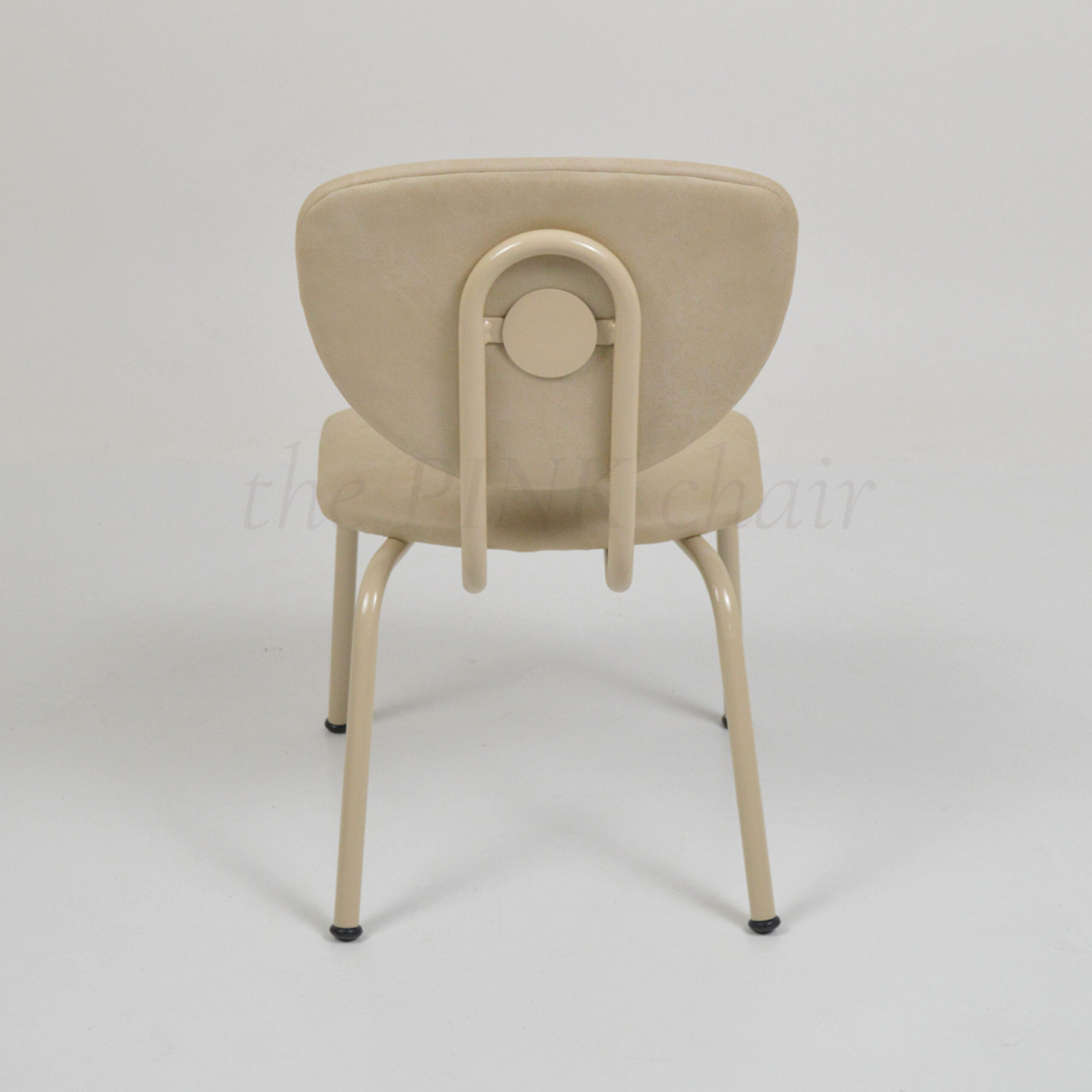 Asiento y respaldo de madera multilaminada tapizada en genero Cuerotex y color Bone, estructura de caño circular pintado y horneado, pintura tipo epoxi, color Beige.