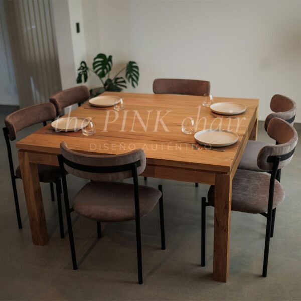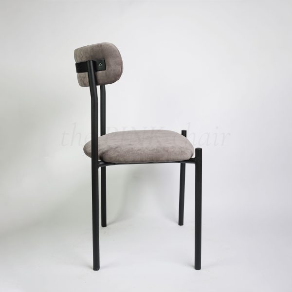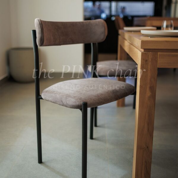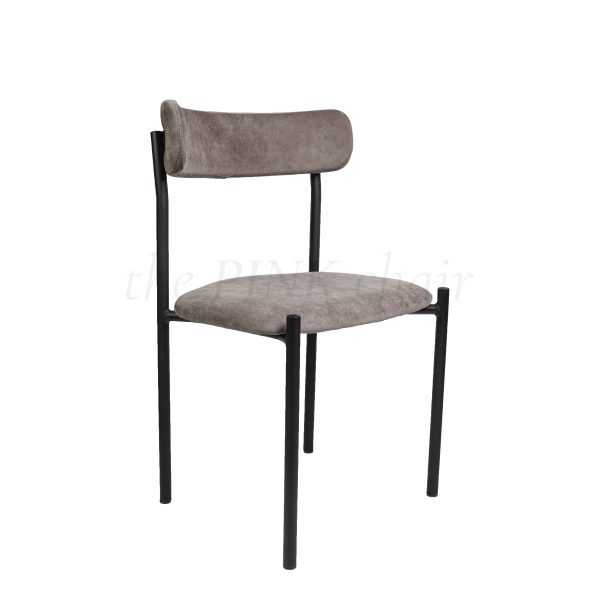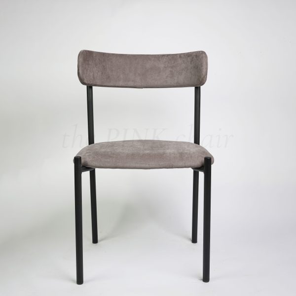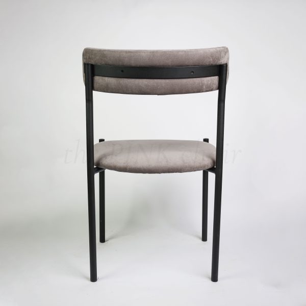 Asiento y respaldo de madera multilaminada tapizada en genero Panne color Gris, estructura de caño circular pintado y horneado, pintura tipo epoxi, color Negro.