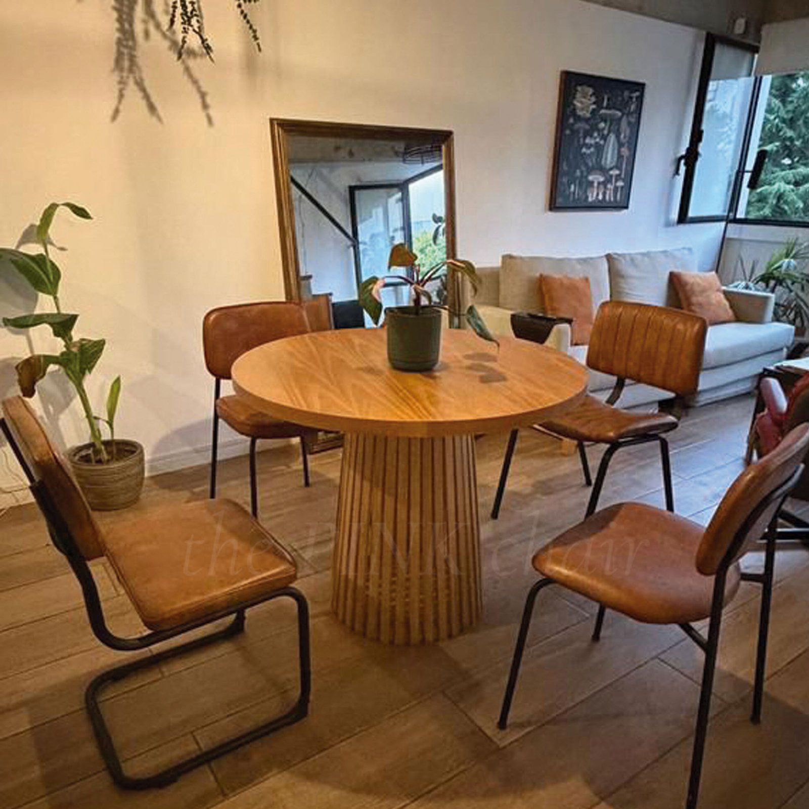 Asiento y respaldo de madera multilaminada tapizada en generos Simil cuero color Habano, estructura de caño circular pintado y horneado, pintura tipo epoxi, color Negro.
