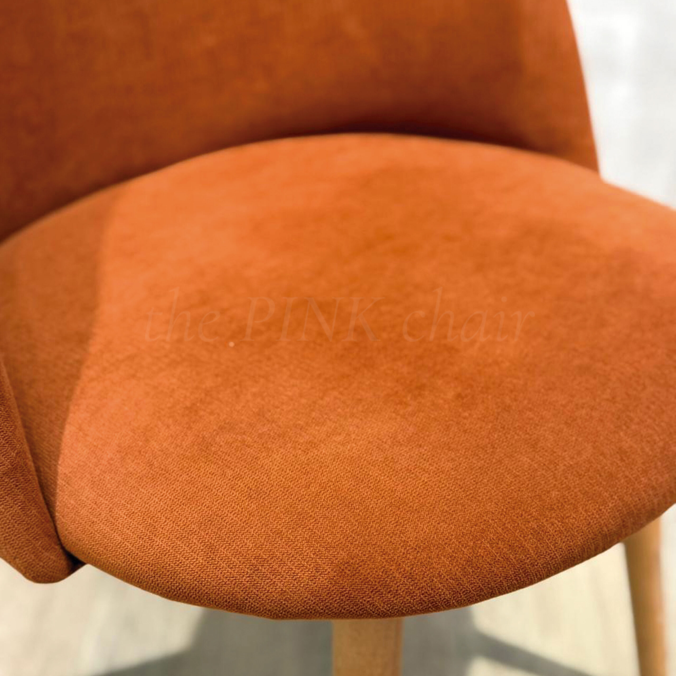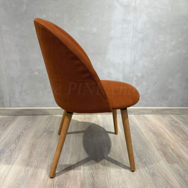 Casco de madera multilaminado, tapizado en genero Touch color Cobre, estructura 4 patas de madera Guatambu.